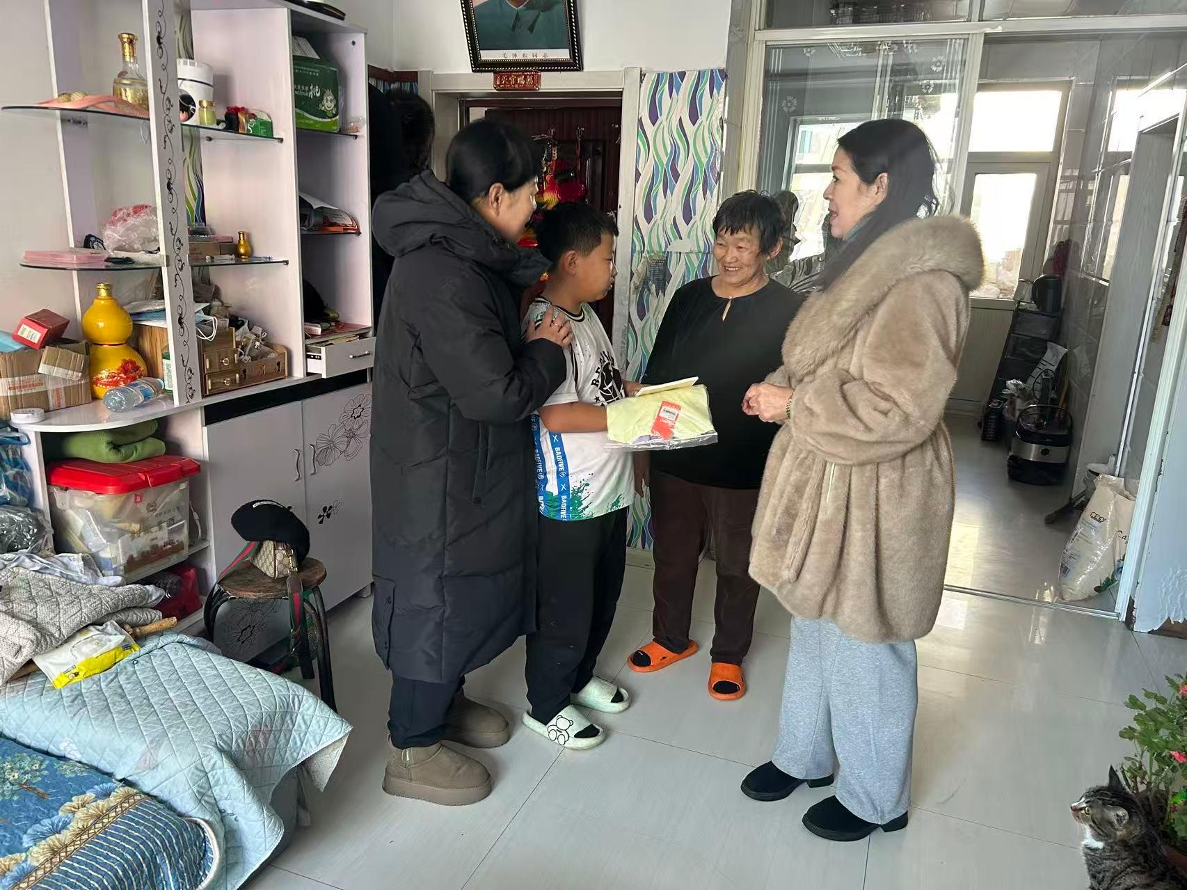 慰问组一行踏着冬日晨光,先后走访了三所小学多名困境学生家庭。每到一户,李金霞副主任都与学生及家长亲切交谈,详细询问孩子们的学习情况、生活状况和假期安排,耐心倾听他们的需求与心愿。“在家要帮助父母、姥爷、奶奶做一些力所能及的家务事,多读书,锻炼身体,”李金霞副主任春风化雨般的叮咛,滋润着孩子们的心田。